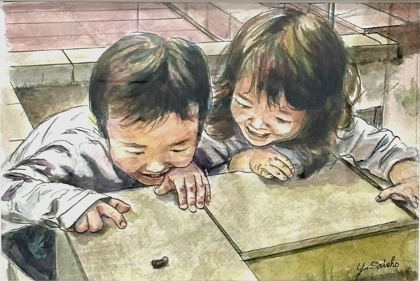 4歳と2歳の孫の楽しいひとコマです。 ダンゴムシを観察して盛り上がるふたりの可愛 い表情を描きました。 苦手なのでダンゴムシは手を抜きました。 2025.05 |