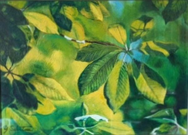 山の中を歩いていると、緑の木葉の間を 光が、スッと通り抜ける瞬間がある。 緑が輝く一瞬である。 25/11 |