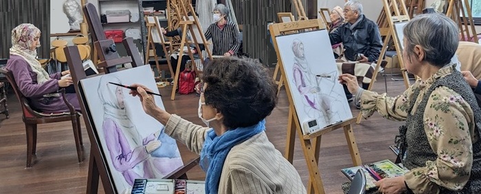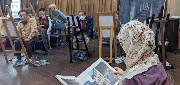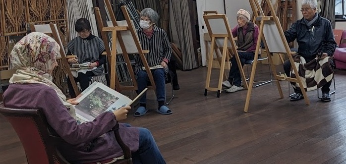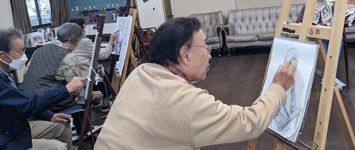 | 今年ラストの例会🖼️ 1年の感謝を込めて11時から皆で会場の大掃除🧹 ワックスも掛け、綺麗になったところで おにぎり、イチゴ、会員手作りの干し柿でランチタイム、楽しく美味しかったです✌️ 1時からは恒例のスケッチ会、モデルさんは若くてハンサムなガテマラからの留学生さん。 日本語もペラペラでティータイムには話も弾み、1年を締めるのに相応しい楽しい例会になりました(@⌒ー⌒@) 個人的にはわかな先生のアドバイスも去年よりは少し長く頭に留まっているような〜(・・? 結果に出るかどうかは別問題ですが〜😅 来年も皆 元気で楽しく集いましょうとお別れしました(^^)/~~~ 文と絵 高旗三紀子 |